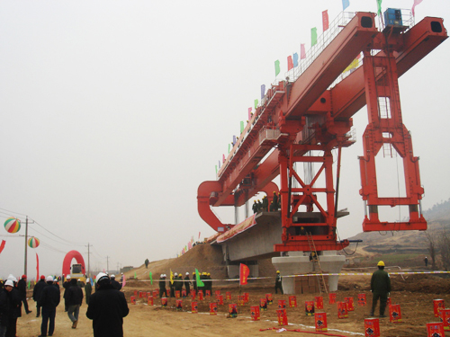 公司主要設(shè)備有:SLJ900T流動(dòng)式運(yùn)架一體機(jī)、SXJ900T/32M分體式架橋機(jī)及運(yùn)梁車(chē)、MG450T提梁機(jī)(跨度有35M~40M,起升凈高20~40M)、ME900T提梁機(jī)、SXJ550T/32M一跨式架橋機(jī)及運(yùn)梁車(chē)、SGTJ180T鋪架機(jī)等高鐵運(yùn)架設(shè)備。